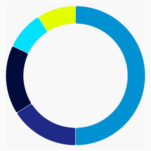 Think about the relationship between the colours of our Core Palette like this: Process Blue is the dominant colour, Royal Blue and Navy Blue the secondary colours, while Bright Blue and Lime Green are accent colours.