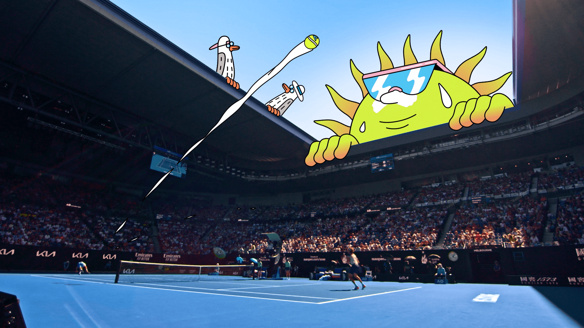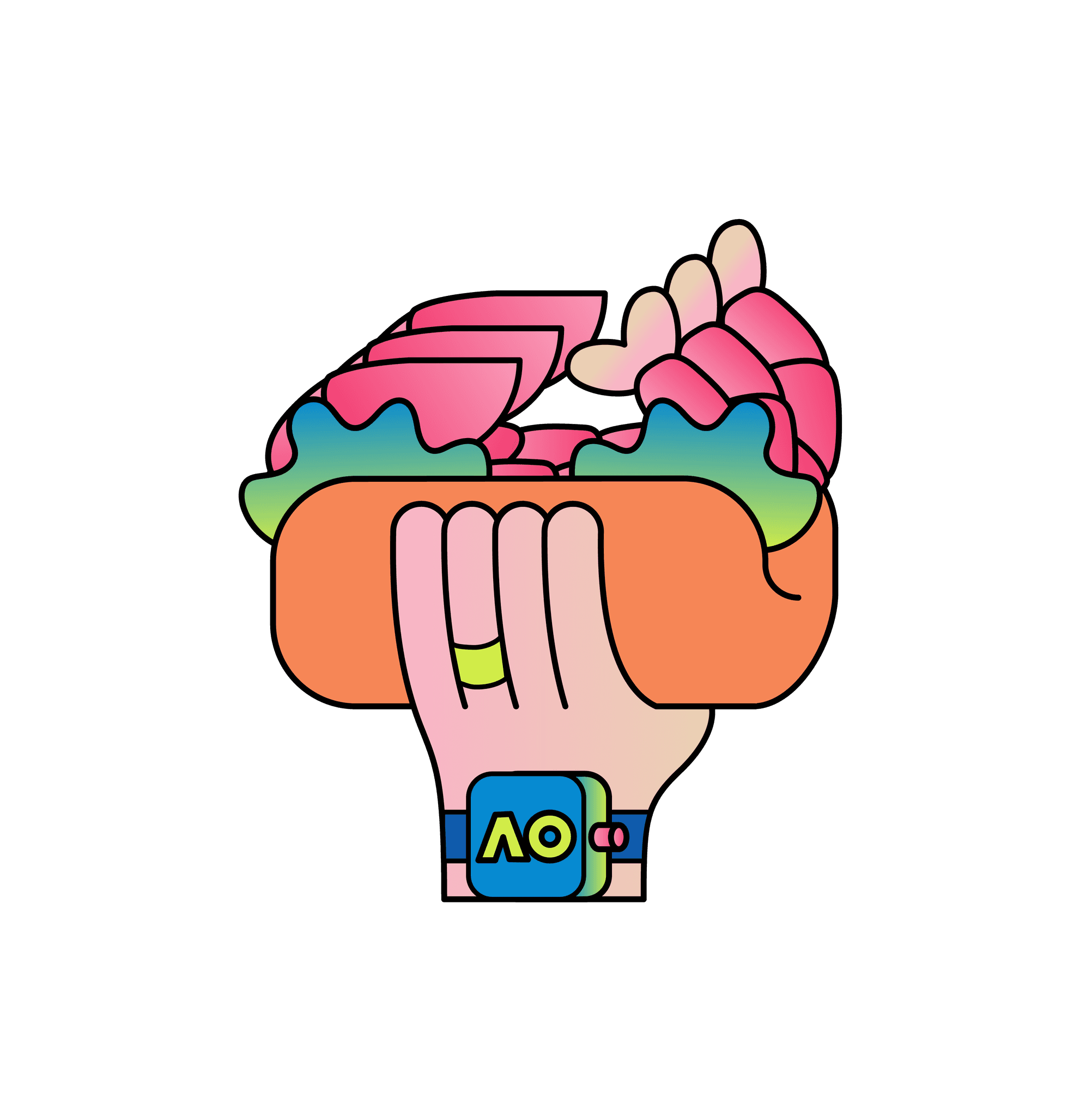 The lines of the court, the curve of the tennis ball – use bespoke graphic elements to weave in a sense of movement and energy. Add layers of depth and texture with dynamic patterns and playful illlustrations that communicate the energised spirit of the AO.